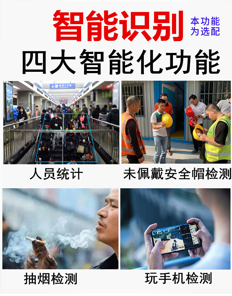 * AI智能識別,可人臉識別、車輛識別、安全帽識別、工服識別、銘牌識別等等。